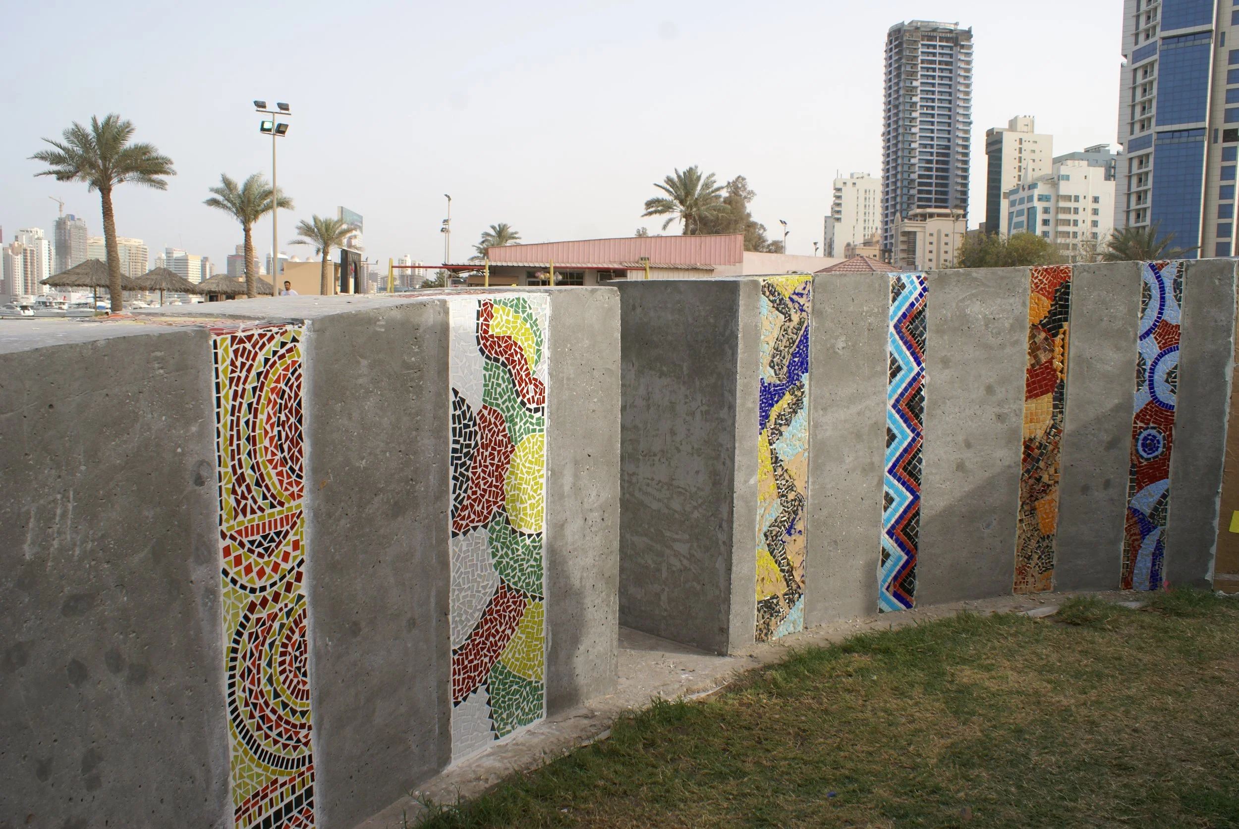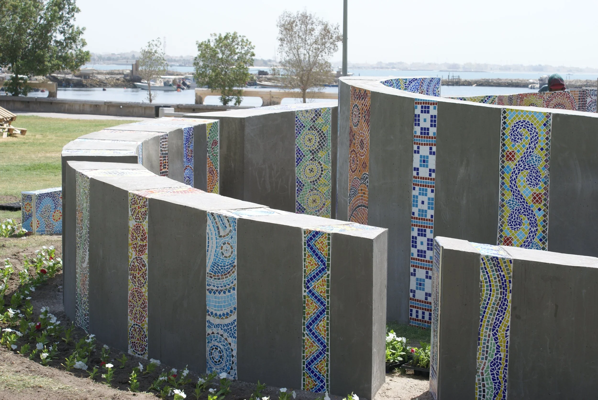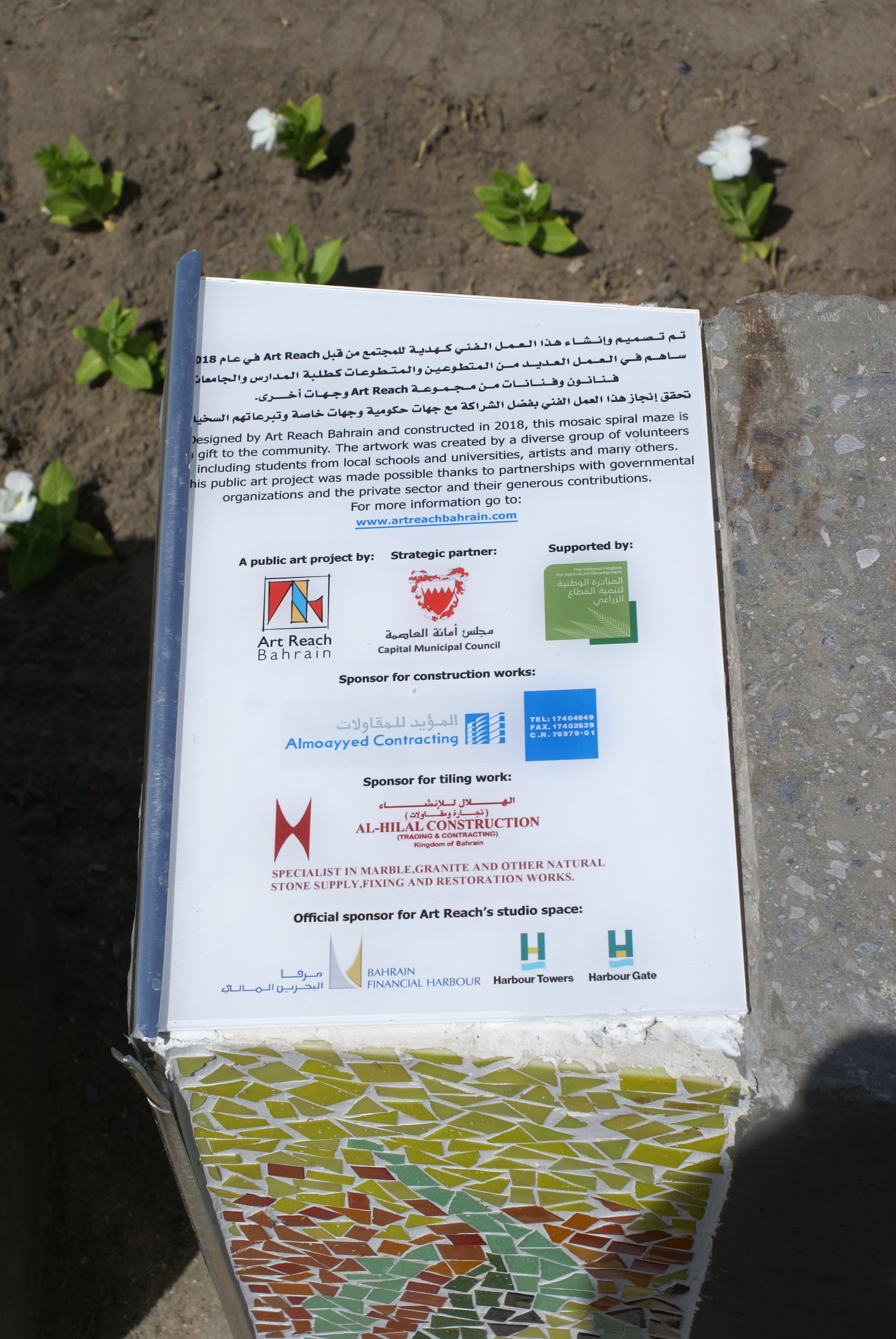 Thanks to support from multiple partners and creative individuals, a spiral maze design that began in 2015, was approved by the Capital Municipality for Al Fatih Corniche in Manama. Art Reach installed artwork for the maze in May 2018 adding approximately 140 panels of mosaic art created by volunteers over a 3-year period.