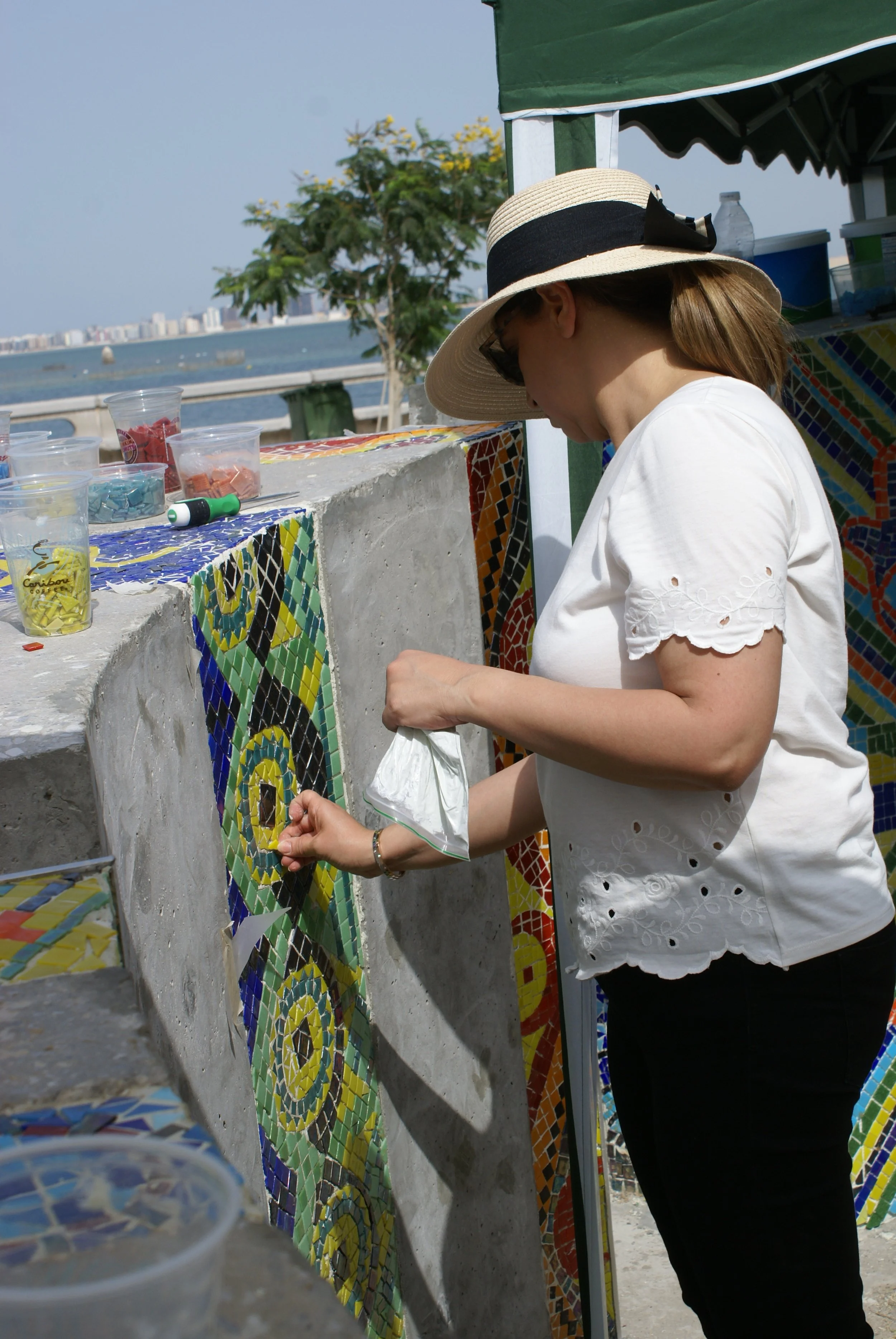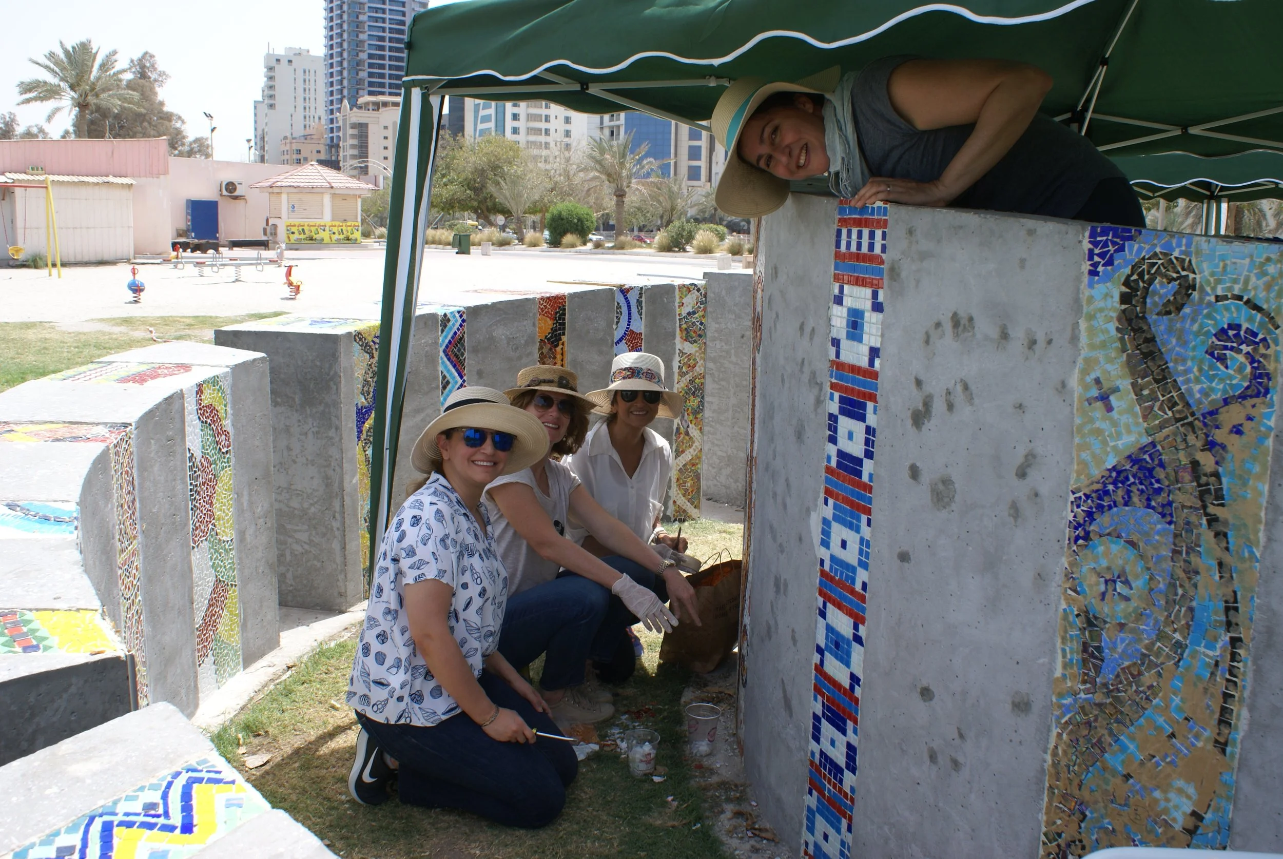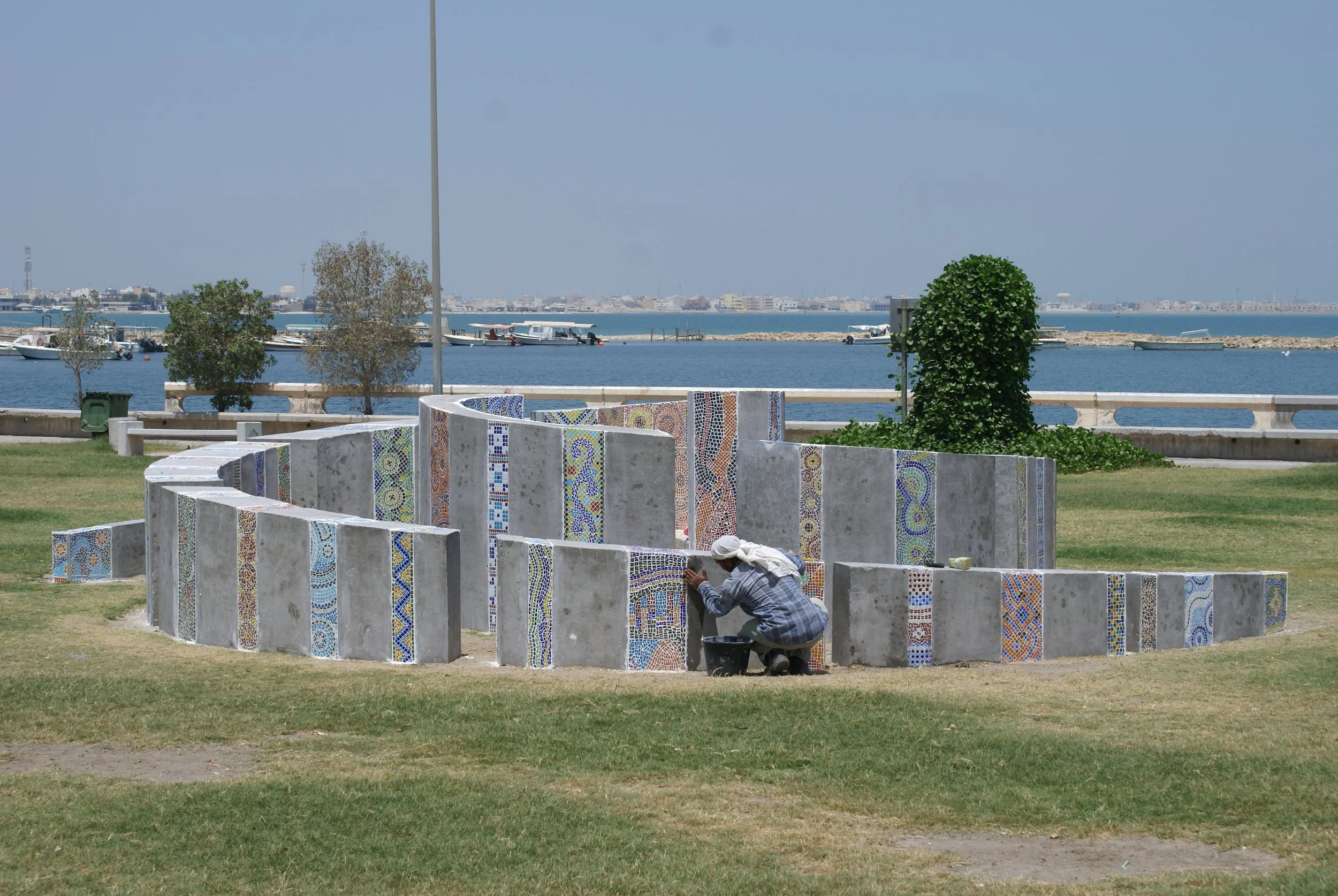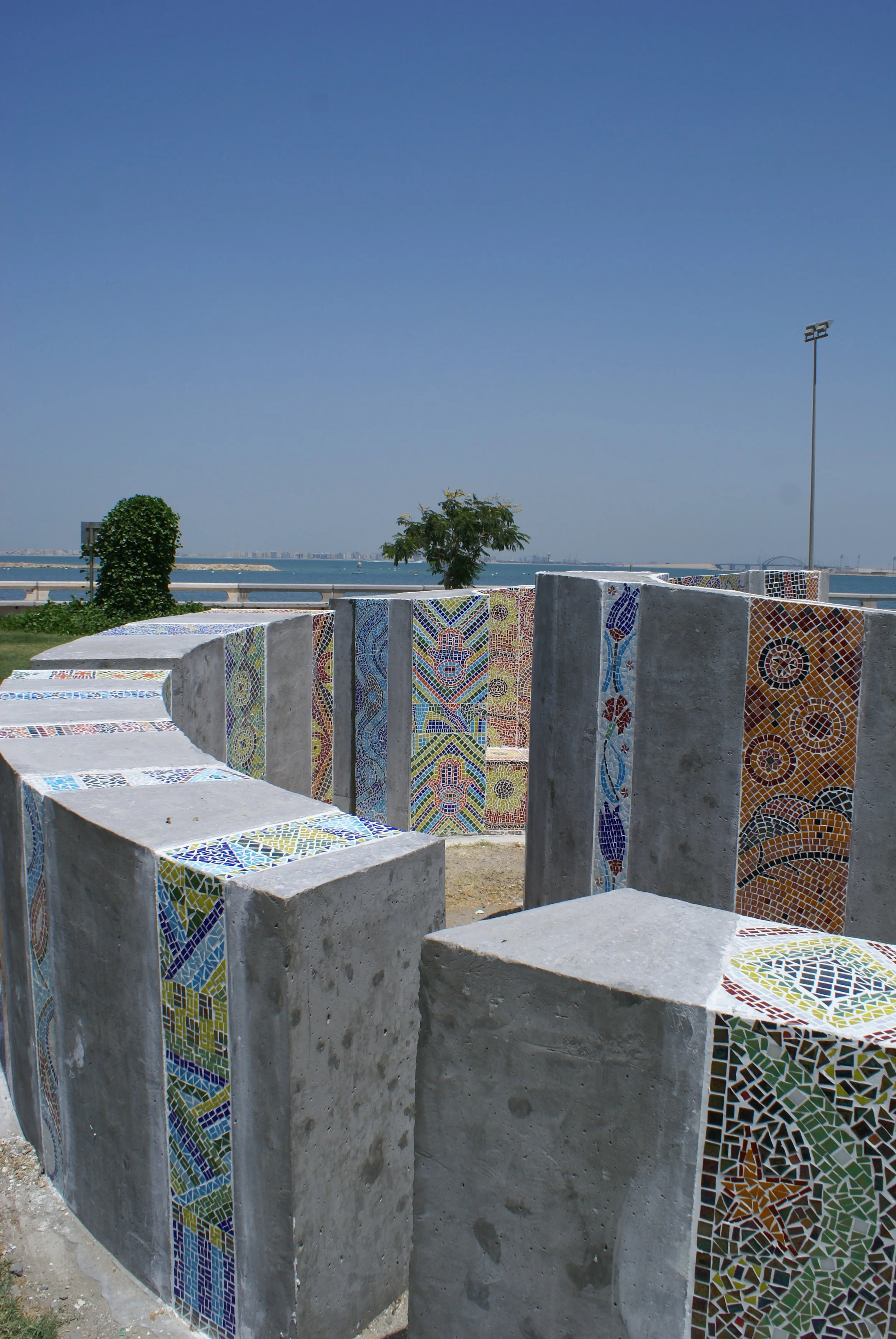 Thanks to support from multiple partners and creative individuals, a spiral maze design that began in 2015, was approved by the Capital Municipality for Al Fatih Corniche in Manama. Art Reach installed artwork for the maze in May 2018 adding approximately 140 panels of mosaic art created by volunteers over a 3-year period.